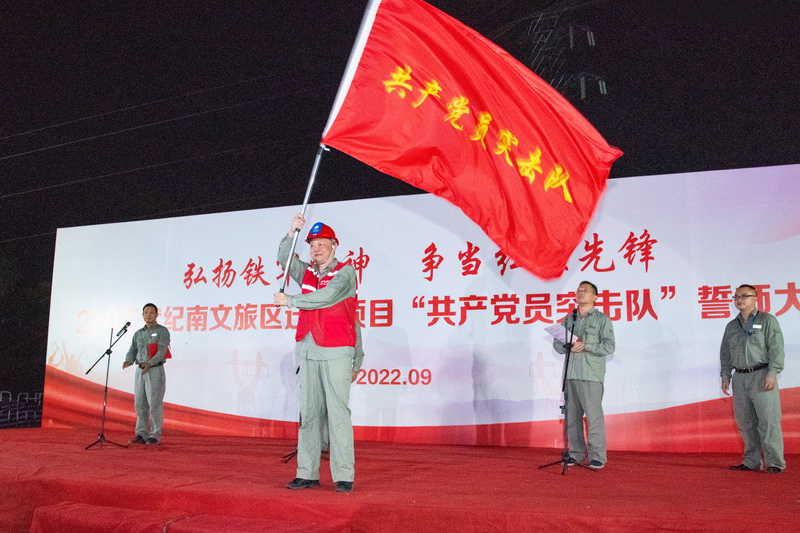 “黨員突擊隊將充分發(fā)揮黨組織戰(zhàn)斗堡壘作用,全力沖鋒,完成攻堅任務,大力弘揚荊電鐵軍精神,全面完成文旅區(qū)220千伏線路遷改工程各項建設任務,確保務期必成!”