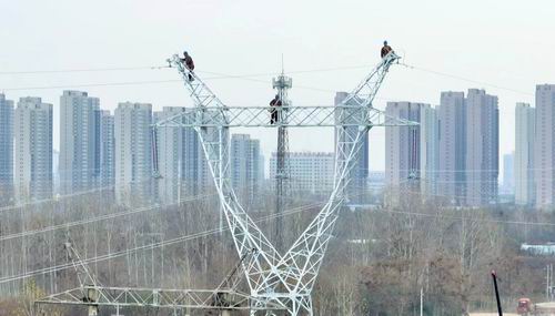 國(guó)網(wǎng)商丘供電公司克服寒冷天氣影響,不斷加快電力線路改造,全力服務(wù)城市建設(shè)。圖為12月4日,該公司對(duì)220千伏|華商線進(jìn)行改造施工。(王輝、趙沖)