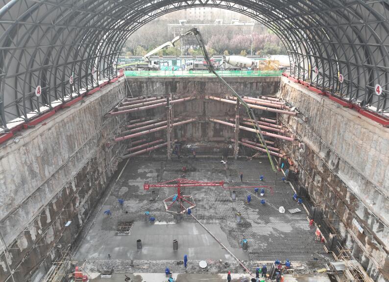 目前,位于地下19.4米深處的變電站“底座”已完成澆筑,為前期基坑和筏板施工畫上了階段性的句號(hào)。預(yù)計(jì)兩個(gè)多月后,將在此筏板基礎(chǔ)上建起一座三層樓高的地下變電站。這座變電站從設(shè)計(jì)到階段性節(jié)點(diǎn)的完成,歷經(jīng)無數(shù)挑戰(zhàn)與曲折。