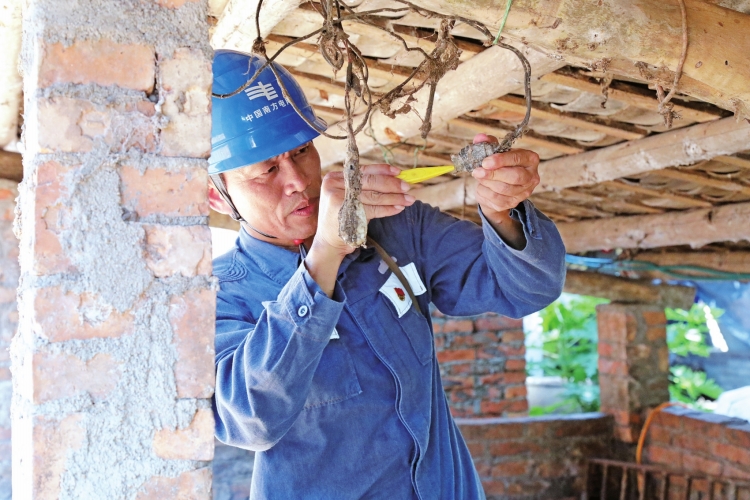 李克恩上門為客戶提供用電檢修服務。林娟 攝