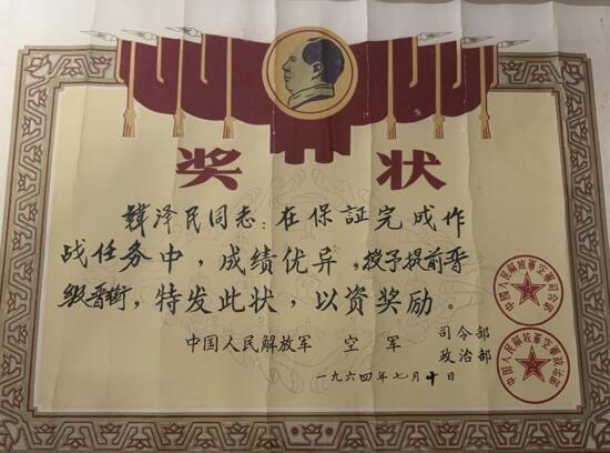1964年7月,空軍政治部、司令部授予韓澤民提前晉級晉銜