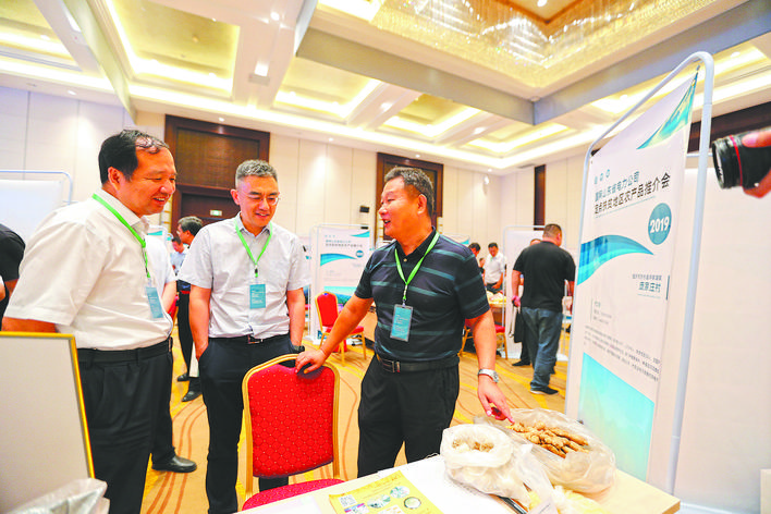 劉衛(wèi)東(中)參加定點(diǎn)扶貧地區(qū)農(nóng)產(chǎn)品推介會。