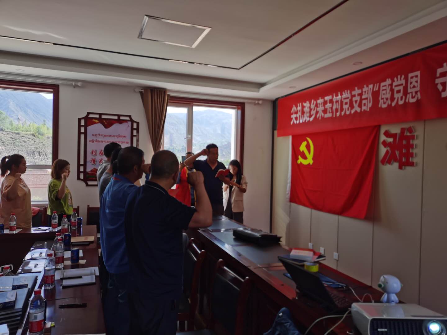 在尖扎來玉村黨員活動室內(nèi),兩支部全體黨員在來玉村黨支部才讓加書記帶領下,面對黨旗,高舉右拳,用藏語和漢語兩種語言重溫入黨誓詞。雖然語言不同,但是每名黨員口中喊出的錚錚誓言,字字句句,神圣而豪邁,依舊強烈震撼著每一位黨員的心,更加堅定了大家“對黨忠誠,積極工作,為共產(chǎn)主義奮斗終身”的理想信念。宣誓結束后,兩支部全體黨員、認真觀看了愛國主義紀錄片《紅色氣質(zhì)》,通過紀錄片的介紹,使全體黨員進一步了解了黨99年的光輝歷程,同時珍惜得來不易的和平、幸福的生活。紀念這段歷史是為了讓廣大黨員知道今天的幸福生活來之不易,為了明天的美好生活,作為新時代的黨員還需加倍努力。