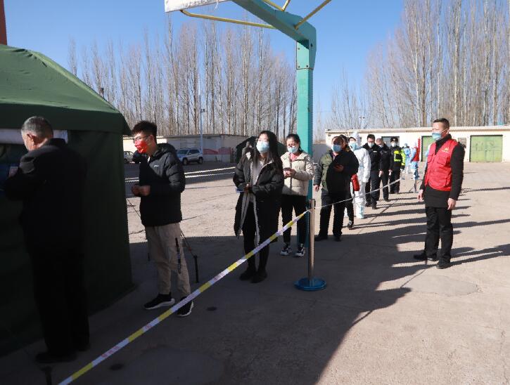 從晨光熹微到正午時(shí)分,在核酸檢測(cè)現(xiàn)場(chǎng),黨員志愿服務(wù)隊(duì)的成員們宣傳、普及檢測(cè)程序,維護(hù)現(xiàn)場(chǎng)秩序,通知居民及時(shí)參與檢測(cè),告知居民在核酸采樣期間聽(tīng)從指揮、全程佩戴口罩,有序完成掃碼、登記、采樣工作流程。“大爺,您把手機(jī)打開(kāi),我們幫您打開(kāi)健康碼。”“我們有兩條檢測(cè)通道,請(qǐng)大家有序進(jìn)行核酸檢測(cè)。”志愿者們截止當(dāng)天下午14點(diǎn),共配合完成390余名居民核酸檢測(cè)志愿服務(wù)工作。同時(shí),為了做好此次全員核酸檢測(cè)工作,杭錦供電公司第一時(shí)間啟動(dòng)專(zhuān)項(xiàng)保電工作,及時(shí)聯(lián)絡(luò)相關(guān)街道、社區(qū)、疫情防控點(diǎn)及核酸檢測(cè)點(diǎn),了解重點(diǎn)場(chǎng)所的用電情況與用電需求,對(duì)電網(wǎng)線路、設(shè)備開(kāi)展特殊巡視,全面開(kāi)展保電工作,保證重點(diǎn)區(qū)域正常用電。同時(shí),由“電駱駝”志愿服務(wù)隊(duì)黨員示范崗帶頭,各部門(mén)、班組積極響應(yīng),對(duì)包聯(lián)小區(qū)周?chē)纳虘?hù)和小區(qū)內(nèi)的居民都進(jìn)行了地毯式的信息統(tǒng)計(jì)。閆恒作為黨員示范崗之一,也是這次疫情防控的主要負(fù)責(zé)人,主動(dòng)承擔(dān)起排查包聯(lián)小區(qū)人員信息及其他工作要求,一遍一遍核對(duì)包聯(lián)住戶(hù)信息,有聯(lián)系不到的住戶(hù)他便主動(dòng)上門(mén)了解情況,生怕漏掉任何一戶(hù)信息。