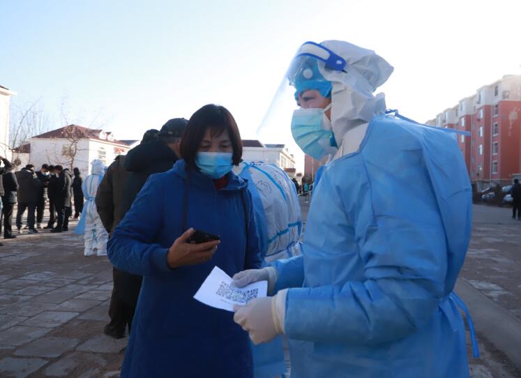 8時(shí)30分,核酸檢測(cè)準(zhǔn)時(shí)開(kāi)始。“請(qǐng)各位居民準(zhǔn)備好自己的身份、健康碼,帶好口罩,有序入內(nèi)。”志愿服務(wù)隊(duì)成員薛東在檢測(cè)點(diǎn)門(mén)口拿著擴(kuò)音器說(shuō)著注意事項(xiàng)。重復(fù)的話不知道重復(fù)了多少遍、二十幾米的路來(lái)來(lái)回回不知走了多少次。一切都在井然有序地進(jìn)行著。