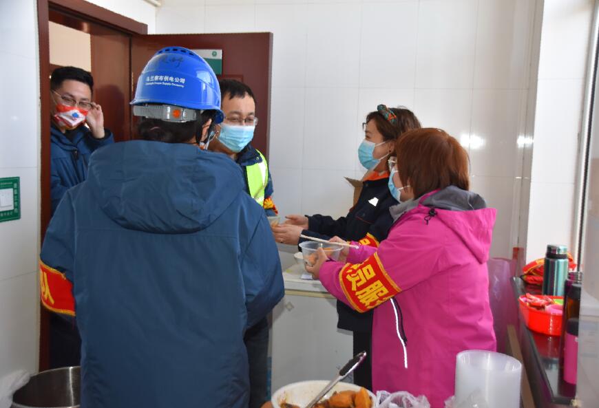 為使檢修一線職工以最飽滿的熱情投入到本次春檢工作中,四子王輸變電管理處成立的黨員服務(wù)隊(duì)為春檢的工作人員送去了暖心午餐。黨員服務(wù)隊(duì)的女同志說:“雖然我們不能工作在春檢一線,但是做后勤保障工作,也一樣是為檢修工作出力,在哪個(gè)崗位都要發(fā)光發(fā)熱。”