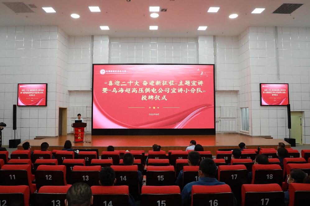 中國電力網(wǎng)訊 為深入宣傳貫徹好習(xí)近平新時代中國特色社會主義思想,持續(xù)加強新時代黨的創(chuàng)新理論宣傳普及工作,推動宣講隊伍建設(shè),讓黨的創(chuàng)新理論“飛入尋常百姓家”,喜迎二十大的召開。6月9日,烏海超高壓供電公司舉行“喜迎二十大 奮進新征程”主題宣講活動暨“烏海超高壓供電公司宣講小分隊”授牌儀式。烏海市委宣傳部相關(guān)領(lǐng)導(dǎo)為宣講小分隊授牌。