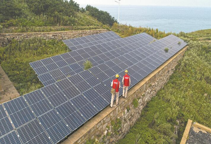 國家電網(wǎng)江蘇電力(連云港)共產(chǎn)黨員服務(wù)隊隊員在位于贛榆區(qū)厲莊鎮(zhèn)的二龍山光伏發(fā)電站,幫助客戶檢查光伏發(fā)電設(shè)備。