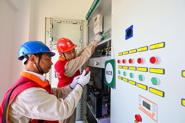 6月18日,國(guó)家電網(wǎng)江蘇電力(金湖飛虎)共產(chǎn)黨員服務(wù)隊(duì)隊(duì)員在金北街道萬莊校東泵站裝表接電,為農(nóng)田插秧抗旱提供可靠電力保障