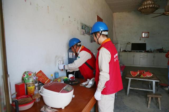 國(guó)網(wǎng)江蘇電力(淮陰光明在線)共產(chǎn)黨員服務(wù)隊(duì)檢查更換困難家庭家中開關(guān)、插座,確保其在夏季高溫期間安全可靠用電。