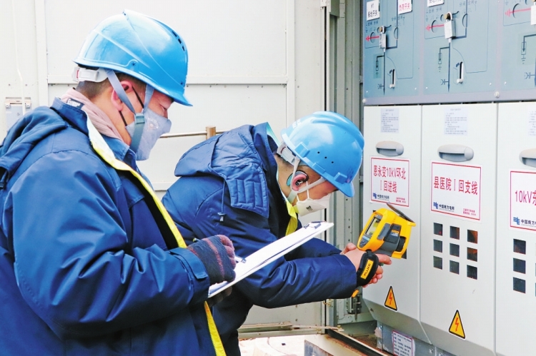 為保障云南省玉溪市華寧縣留觀點(diǎn)、留驗(yàn)點(diǎn)、醫(yī)學(xué)治療點(diǎn)及滯留旅客安置點(diǎn)等防控疫情第一線(xiàn)的正常用電,云南電網(wǎng)公司玉溪華寧供電局組織人員對(duì)涉及線(xiàn)路、設(shè)備進(jìn)行特巡特維,保障可靠供電。圖為該局配電管理所員工對(duì)縣醫(yī)院支線(xiàn)的開(kāi)關(guān)柜進(jìn)行測(cè)溫。 向生偉 攝