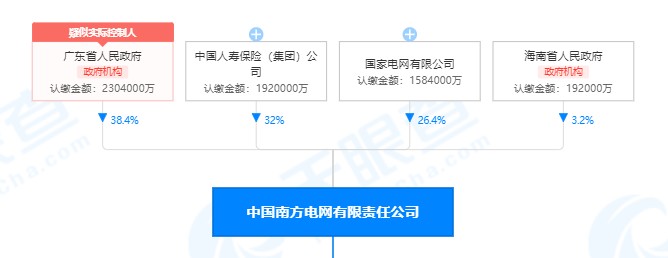根據(jù)公開資料查詢,本次調(diào)整前中國南方電網(wǎng)總注冊資本為600億元。共有4家股東,股本比例是:廣東省人民政府出資230.4億,占比38.4%,為第一大股東,中國人壽保險(xiǎn)(集團(tuán))公司出資192億,占比32%,排名第二,國家電網(wǎng)有限公司出資158.4億,占比26.4%,排名第三,海南省人民政府認(rèn)繳19.2億,占比3.2%,排名最末。