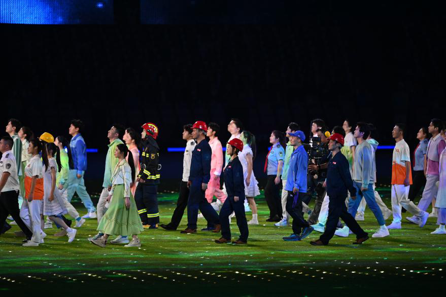 ▲國家電網(wǎng)員工來到閉幕式舞臺中央。新華社記者 黃宗治 攝