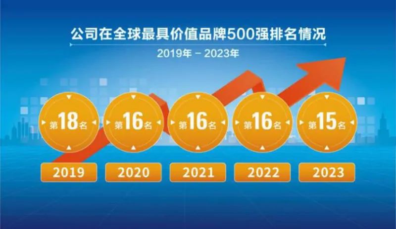 公司在《財富》世界500強位列第3位,連續(xù)11年獲三大國際評級機構國家主權級信用評級,連續(xù)19年獲得國務院國資委業(yè)績考核A級,連續(xù)6年位居全球公用事業(yè)品牌第一位,在中央企業(yè)品牌建設對標中排名前三。公司品牌價值從2019年4575.36億元上升至2023年6268.71億元,連續(xù)8年位列中國500最具價值品牌榜首。全球最具價值品牌500強排名從2019年第18位上升至2023年第15位。