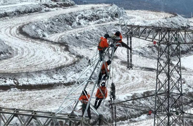 國網(wǎng)河南電力員工開展冰凍線路搶修工作