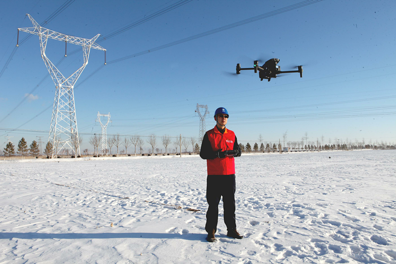 國網(wǎng)冀北超高壓公司員工操作無人機(jī)巡查輸電大通道