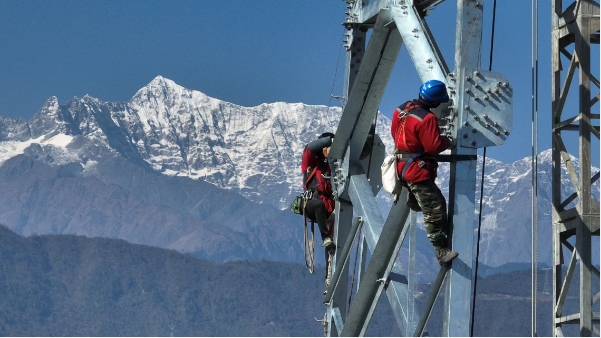 賦動能 特高壓建設加速推進在四川甘孜藏族自治州瀘定縣,金沙江上游—湖北特高壓直流輸電工程建設正酣,電力施工人員在山脊上爭分奪秒組裝塔材。“我們所在的標段處于高海拔重冰區(qū),新建的上百座鐵塔坡度均大于35度,最陡達65度,有的塔腿高差近20米,仿佛在‘刀背’上架鐵塔。”國網四川送變電公司項目經理鄒忠旋介紹。這個全球海拔最高的特高壓直流輸電工程,投運后每年可向華中地區(qū)輸送電量近400億千瓦時,替代燃煤超1700萬噸。