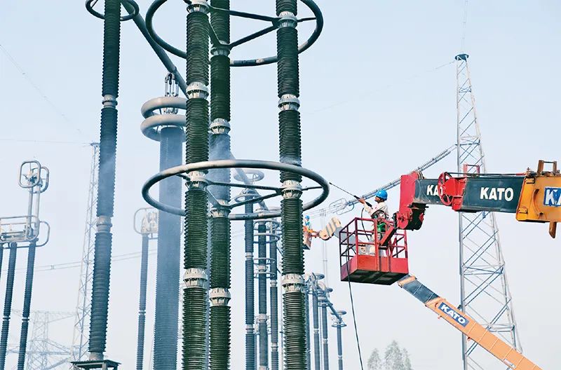 圖為2024年3月1日,該工程開(kāi)展綜合檢修,工作人員在沖洗絕緣子。國(guó)家電網(wǎng)黨組宣傳部供圖