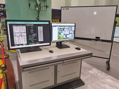原來(lái),桌子上擺放著兩臺(tái)顯示器,旁邊還立了一面大白板。左邊一臺(tái)顯示器接入了網(wǎng)頁(yè)版南瑞NC3.0-Web瀏覽系統(tǒng),登錄后即可直觀查看1號(hào)機(jī)組試驗(yàn)過(guò)程中的各部參數(shù),緩解了以前做試驗(yàn)時(shí)人員全部“扎堆”在監(jiān)控系統(tǒng)盤(pán)柜旁的擁擠狀況,并且使用鼠標(biāo)操作輕松方便,切換畫(huà)面快速準(zhǔn)確,參數(shù)瀏覽盡收眼底,解決了在下位機(jī)觸摸屏用手指翻頁(yè)查看的不便之處。右邊一臺(tái)顯示器接入了網(wǎng)頁(yè)版綜合安防管理平臺(tái),此平臺(tái)是全廠主輔設(shè)備的“千里眼”,即遙視系統(tǒng)。有了它,1號(hào)機(jī)做試驗(yàn)時(shí)就可以通過(guò)攝像頭清楚查看各部件的實(shí)時(shí)運(yùn)行情況,尤其是水車(chē)室、人孔門(mén)等重點(diǎn)部位,避免了人員跑上跑下造成的時(shí)間和精力上的浪費(fèi)。最后說(shuō)說(shuō)這塊大白板,在現(xiàn)場(chǎng),不僅可以張貼試驗(yàn)方案,列出重要時(shí)間節(jié)點(diǎn)和重要試驗(yàn)數(shù)據(jù),使整個(gè)試驗(yàn)處于顯而易見(jiàn)的可控狀態(tài),還可以隨時(shí)隨地開(kāi)展“頭腦風(fēng)暴”,分析試驗(yàn)過(guò)程中遇到的問(wèn)題,集思廣益提出最優(yōu)解決方案。原來(lái),這是一臺(tái)“開(kāi)機(jī)試驗(yàn)調(diào)度臺(tái)”,是該廠電氣分場(chǎng)自動(dòng)班黨員積極開(kāi)展智能化創(chuàng)新,充分發(fā)揮聰明才智的成果,如今已正式投入使用,真正成為了1號(hào)機(jī)組動(dòng)態(tài)試驗(yàn)的有力“幫手”。