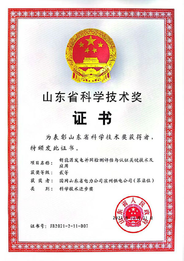 本網(wǎng)訊 7月1日,筆者從《山東省人民政府關(guān)于2021年度山東省科學(xué)技術(shù)獎(jiǎng)勵(lì)的決定》上了解到,濱州公司參與申報(bào)的《新能源發(fā)電并網(wǎng)檢測評估與認(rèn)證關(guān)鍵技術(shù)研究及應(yīng)用》項(xiàng)目榮獲2021年度山東省科學(xué)技術(shù)獎(jiǎng)科技進(jìn)步二等獎(jiǎng)。這是濱州公司首次獲得山東省科學(xué)技術(shù)獎(jiǎng)。