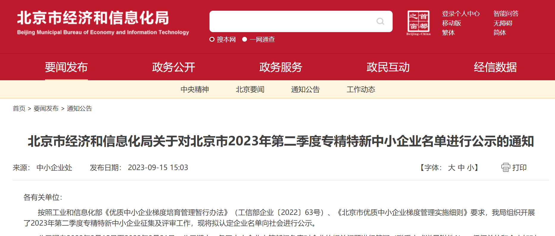 中國電力網(wǎng)訊(通訊員 時(shí)君柳) 9月15日,北京市經(jīng)濟(jì)和信息化局公布了《關(guān)于對北京市2023年第二季度“專精特新”中小企業(yè)名單進(jìn)行公示的通知》,國網(wǎng)信通產(chǎn)業(yè)集團(tuán)國電通憑借行業(yè)專業(yè)化、技術(shù)創(chuàng)新力、服務(wù)精細(xì)化從眾多參選企業(yè)中脫穎而出,獲得2023年度北京市“專精特新”中小企業(yè)榮譽(yù)稱號。