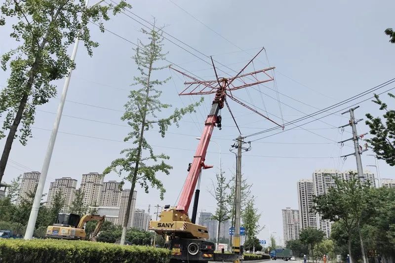 國(guó)網(wǎng)湖北鄂州供電公司在110千伏架空線路遷改工程中應(yīng)用移動(dòng)式傘形跨越架