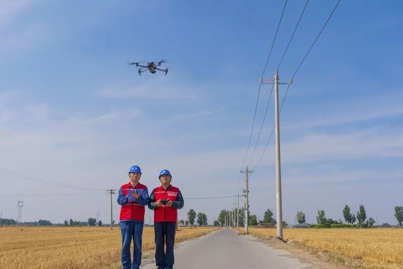 國(guó)網(wǎng)河北石家莊供電公司員工應(yīng)用無人機(jī)巡檢配網(wǎng)線路