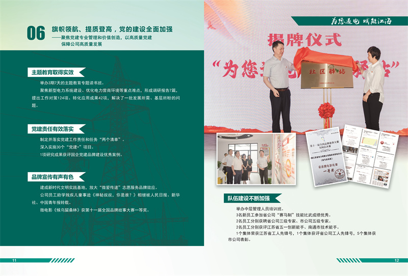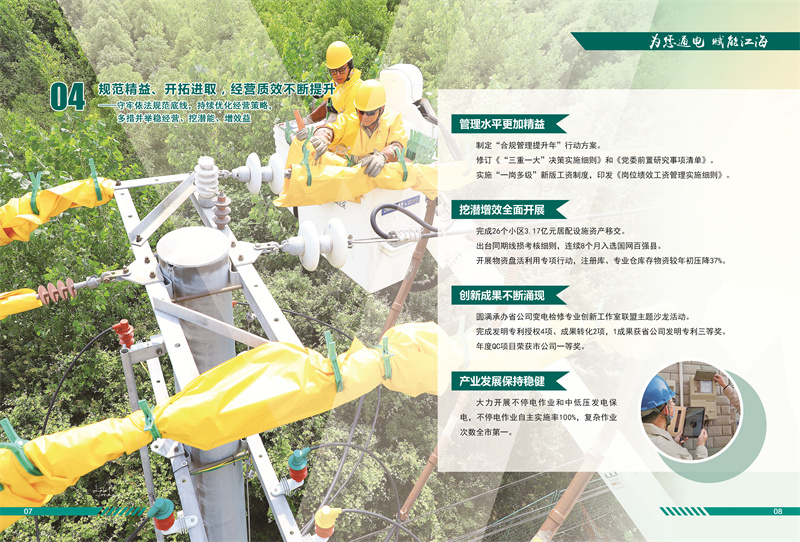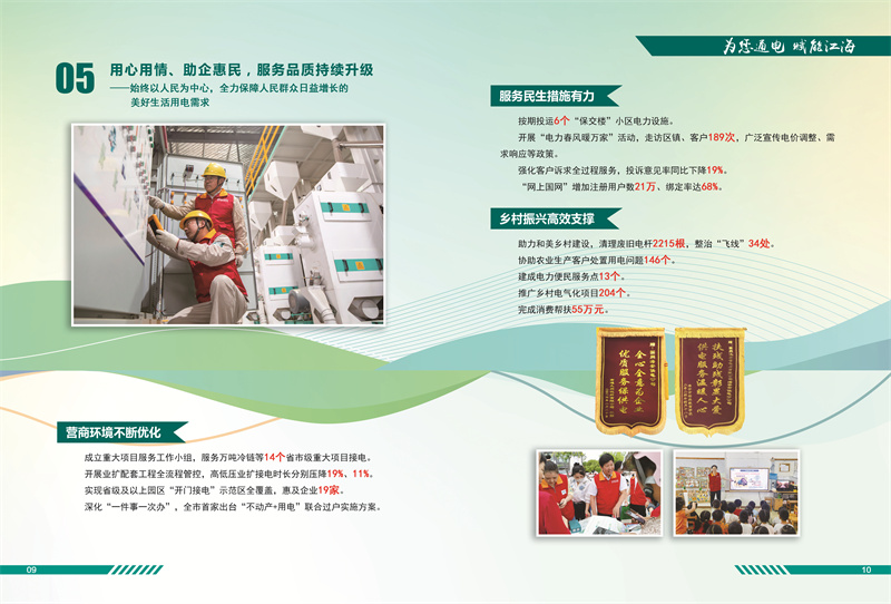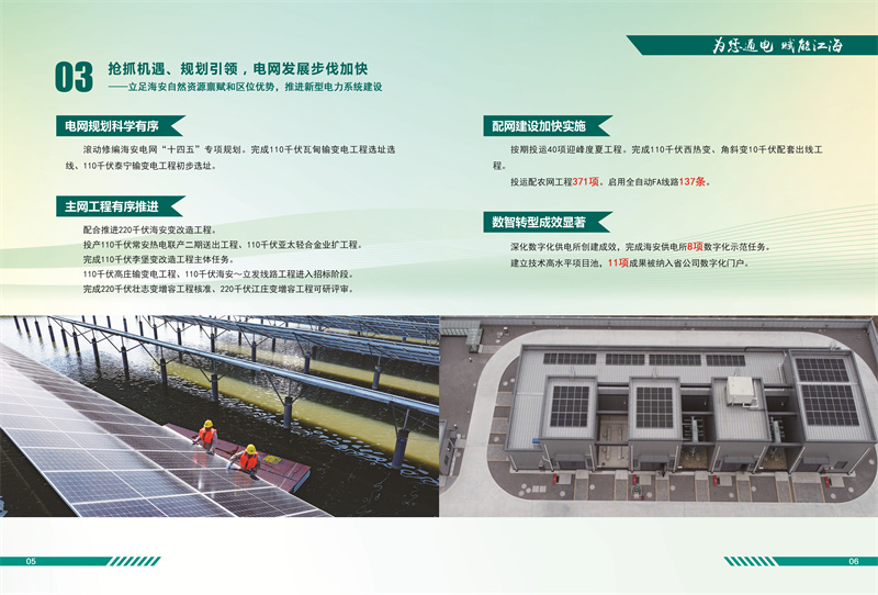 《白皮書(shū)》披露,2023年,該公司組織召開(kāi)海安市迎峰度夏保供工作會(huì)議,深挖非工空調(diào)負(fù)荷調(diào)控潛力,促請(qǐng)政府出臺(tái)需求響應(yīng)、非工負(fù)荷調(diào)節(jié)能力建設(shè)等支持政策。堅(jiān)持“杜絕增量、清除存量”原則,拆除1000千伏泰吳線下方違規(guī)大棚。滾動(dòng)修編海安電網(wǎng)“十四五”專(zhuān)項(xiàng)計(jì)劃,主網(wǎng)工程有序推進(jìn)。深化數(shù)字化供電所創(chuàng)建成效,完成8項(xiàng)數(shù)字化示范任務(wù)。11項(xiàng)成果被納入省公司數(shù)字化門(mén)戶(hù)。完成發(fā)明專(zhuān)利授權(quán)4項(xiàng)、成果轉(zhuǎn)化2項(xiàng),年度QC項(xiàng)目榮獲市公司一等獎(jiǎng)。深化“開(kāi)門(mén)接電”示范區(qū)建設(shè),全面省級(jí)以上園區(qū)全覆蓋,成立重大項(xiàng)目服務(wù)小組,服務(wù)萬(wàn)噸冷鏈等14個(gè)省市級(jí)重大項(xiàng)目接電。公司員工助學(xué)殘疾兒童事跡《神秘叔叔,你是誰(shuí)?》相繼被人民日?qǐng)?bào)、新華社、中國(guó)青年報(bào)等中央媒體相繼轉(zhuǎn)載。