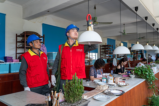 當(dāng)天,紅船共產(chǎn)黨員服務(wù)隊(duì)隊(duì)員走進(jìn)善璉湖筆廠裝套、梳毛等生產(chǎn)車間,對(duì)內(nèi)部電氣主接線、高低壓設(shè)備、應(yīng)急電源燈和用電工器具等關(guān)鍵設(shè)備進(jìn)行安全排查,幫助糾正不安全用電行為,督促用戶及時(shí)整改。在中國(guó)湖筆文化館內(nèi),他們仔細(xì)檢查配電箱及低壓線路,對(duì)內(nèi)部線路老化破損、插座開關(guān)接觸不良等問題進(jìn)行消缺處理,并對(duì)警示標(biāo)志等進(jìn)行規(guī)范整頓,精心營(yíng)造安全用電環(huán)境。