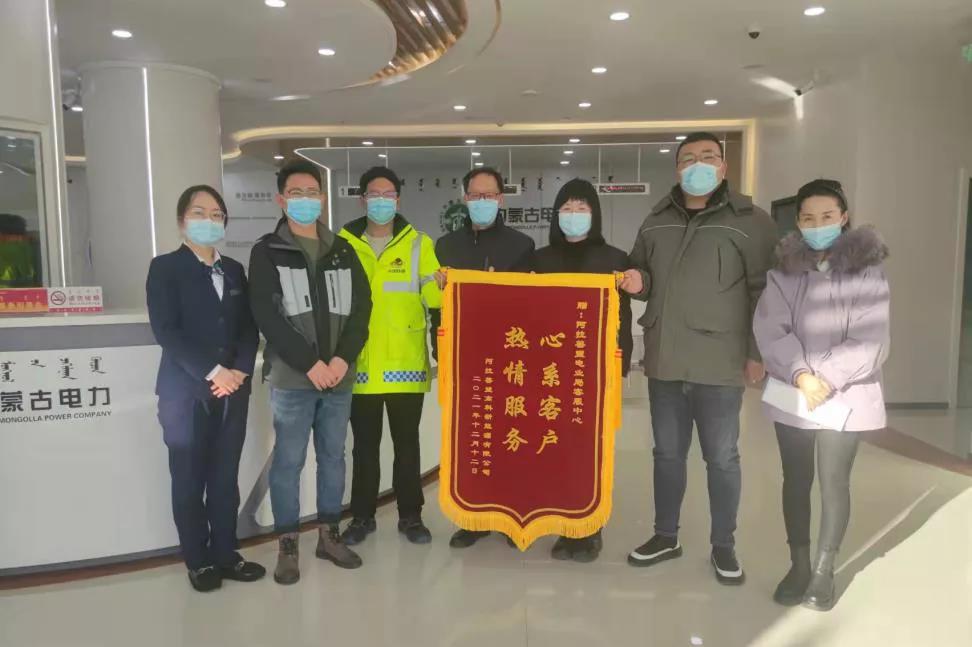 12月13日,內(nèi)蒙古高科新能源有限公司分散式風(fēng)力發(fā)電項目并網(wǎng)用電負責(zé)人將一面寫有“心系客戶 熱情服務(wù)”的錦旗送到客戶服務(wù)中心。