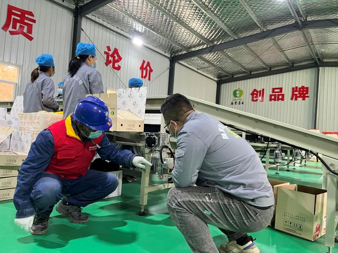 延安供電公司員工在陜西果業(yè)安塞分公司幫助客戶檢查冷庫用電設備。馬浩凱 攝