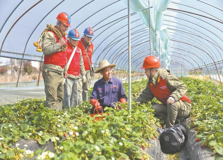 黨員供電網格員來到赤壁市官塘驛鎮(zhèn),向草莓種植戶了解用電需求。 畢紅續(xù) 攝