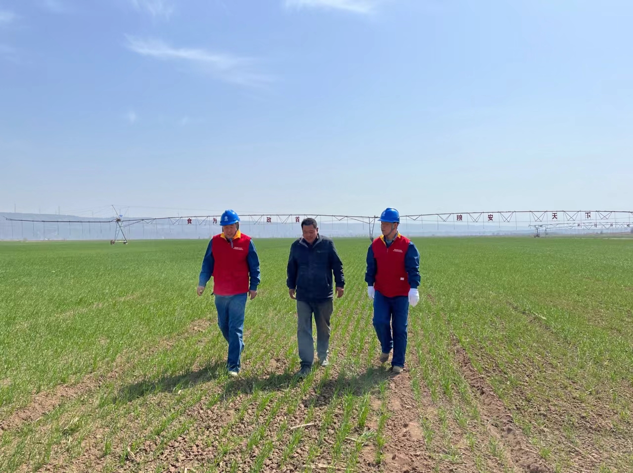 眼下正值春分時節(jié),在黃汾百萬畝糧食優(yōu)質(zhì)高產(chǎn)高效示范區(qū)芮城基地,野綠連天,風(fēng)吹麥浪,香滿兩岸,當(dāng)?shù)匦←滉懤m(xù)進(jìn)入返青期。3月20日當(dāng)天,國網(wǎng)運(yùn)城供電公司“電小田”黨員服務(wù)隊(duì)來到遠(yuǎn)鵬智慧農(nóng)場,對農(nóng)灌用電設(shè)備進(jìn)行檢查。