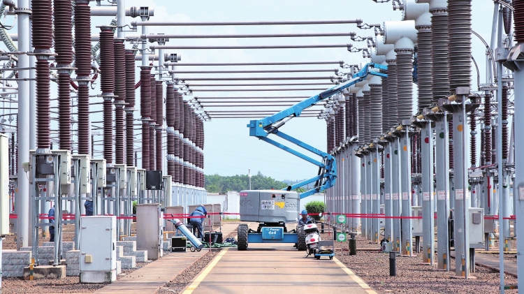 圖為3月23日,在海南澄邁500千伏福山變電站內,超高壓公司廣州局??诜志謾z修人員通過高空車開展防發(fā)熱專項工作,同時進行斷路器試驗。