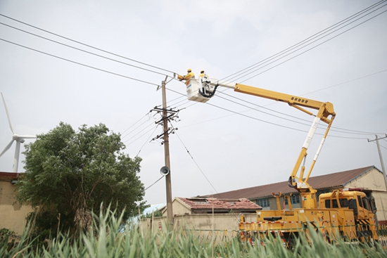 中國電力網(wǎng)訊 6月9日,在濰坊壽光市羊口鎮(zhèn)濕地公園附近,國網(wǎng)壽光市供電公司帶電作業(yè)人員對10千伏羊三線鎮(zhèn)區(qū)支線17號桿、羊四線水產(chǎn)城支線01號桿、羊五線57號桿進行帶電消缺,及時處理設(shè)備線夾發(fā)熱隱患,保障附近居民放心用電、清涼度夏。