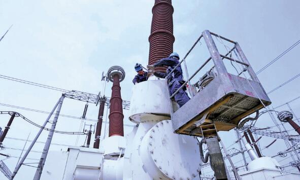 當(dāng)天,在安裝5051斷路器最后一相斷路器套管時(shí),受上方帶電引線和一側(cè)母線影響,吊車(chē)作業(yè)空間十分有限,作業(yè)人員需要精準(zhǔn)把控吊車(chē)停放位置和操作軌跡。“斷路器套管安裝時(shí),空中吊裝需要調(diào)整套管傾斜角度,與安裝角度保持一致,再和斷路器本體對(duì)接,在作業(yè)過(guò)程中還需采取措施,防止套管晃動(dòng)導(dǎo)致距帶電設(shè)備過(guò)近。”張坤林說(shuō),“開(kāi)工前,我們?cè)诂F(xiàn)場(chǎng)勘查階段就充分考慮了這個(gè)問(wèn)題,結(jié)合設(shè)備重量、起吊車(chē)型號(hào)、斷路器高度,反復(fù)計(jì)算、確認(rèn)操作軌跡和空間裕量,提前把吊車(chē)停放位置標(biāo)記出來(lái),避免磕碰,確保起吊作業(yè)安全。”
