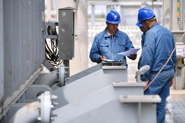 5月27日,電力工人在工程現(xiàn)場(chǎng)進(jìn)行檢修作業(yè)。