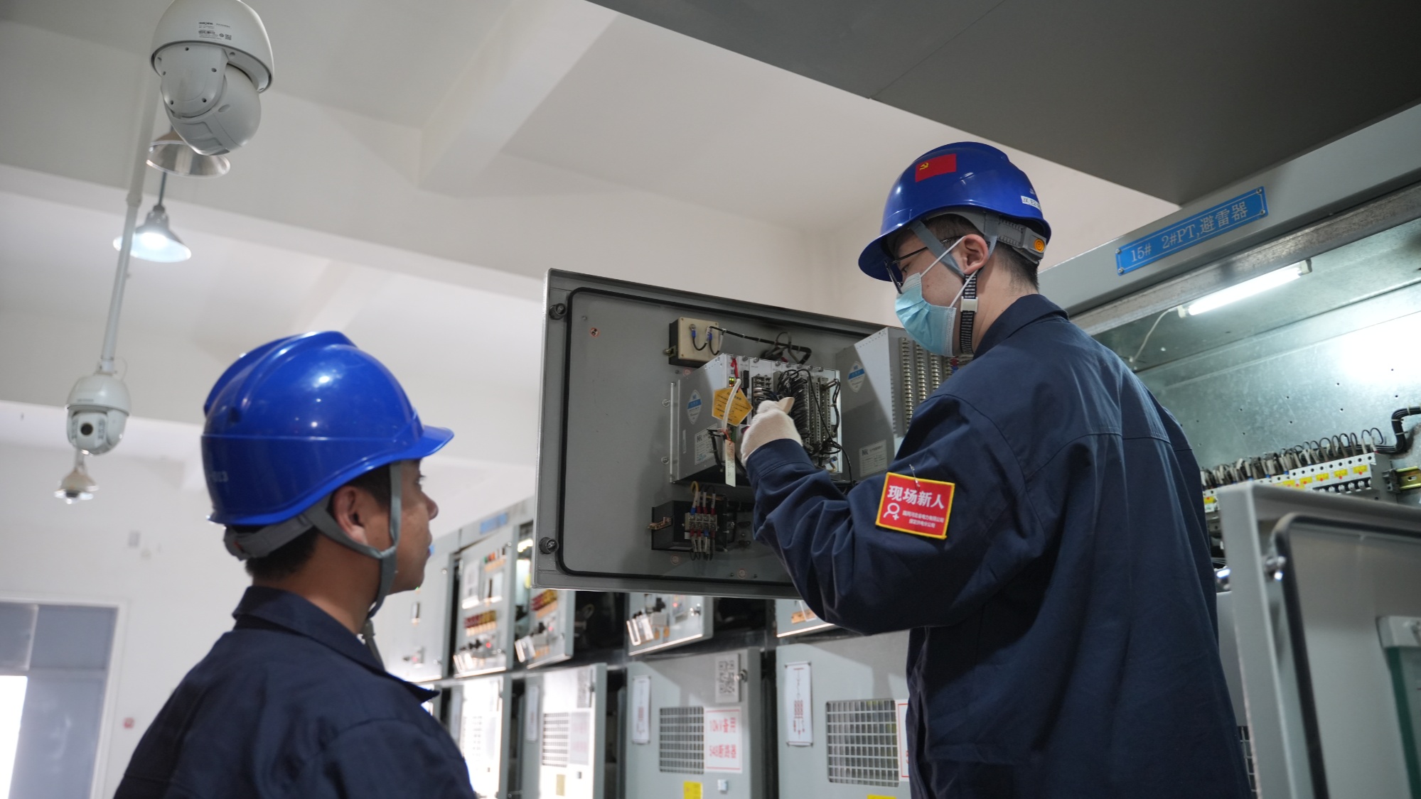 工作人員檢修110千伏留村站內(nèi)二次設(shè)備(沈佳明 攝)