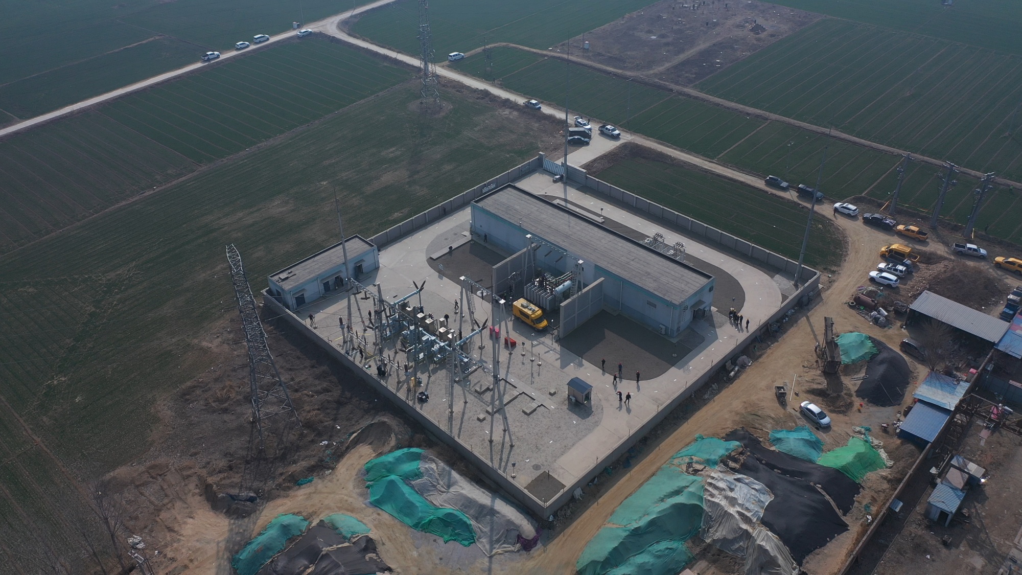110千伏留村站春檢現(xiàn)場航拍(沈佳明 攝)