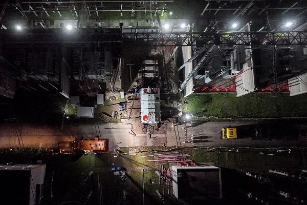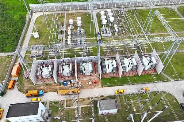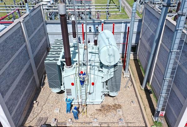圖說:500千伏三林變電站4號主變C相本體成功完成調(diào)換并恢復(fù)供電 采訪對象供圖(下同)
