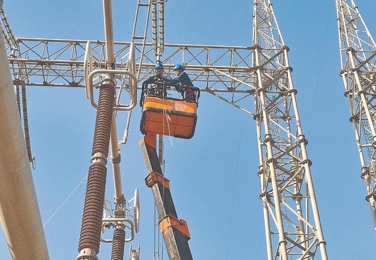 11時,孫志忠和技術(shù)監(jiān)督人員穿梭在龐大的主變壓器設(shè)備間,彎腰檢查連接的緊固程度,或抬頭觀察線路的走向,仔細(xì)檢查每一個連接點(diǎn)、每一段線路,確保2號主變壓器高壓側(cè)引流線的安裝符合技術(shù)標(biāo)準(zhǔn)。