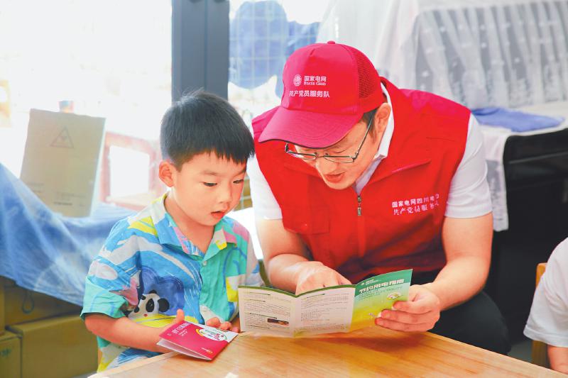 在四川廣安,國網(wǎng)四川電力共產(chǎn)黨員服務(wù)隊隊員走進幼兒園,宣傳節(jié)約用電。王西米 攝