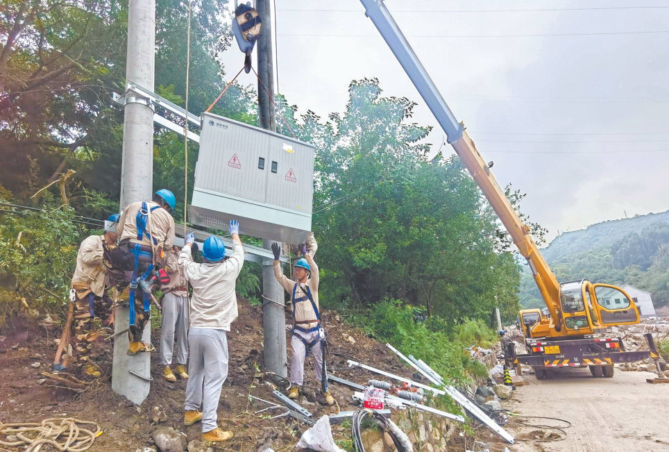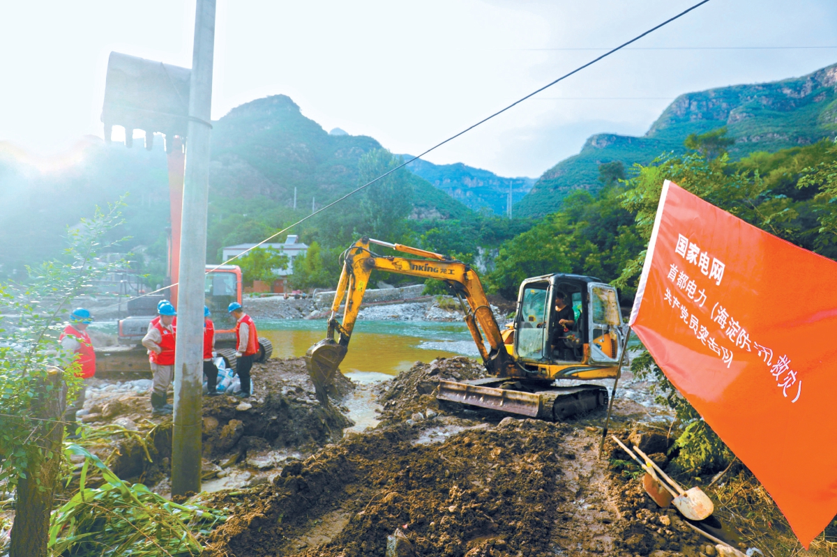 朝陽區(qū)搶修團(tuán)隊(duì)在門頭溝王平鎮(zhèn)南澗村對(duì)部分受損線路開展復(fù)電搶修。張文靜 攝