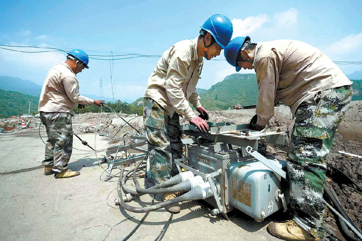 搶修人員持續(xù)努力,在完成最后380米跨河及山腰處線路的架設(shè)工作后,順利完成了房山區(qū)張坊鎮(zhèn)片上路10千伏線路的搶修工作。 王洋 攝