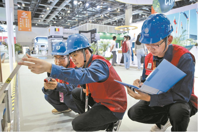 ▲9月2日,石景山供電公司服貿(mào)會(huì)保障團(tuán)隊(duì)成員在首鋼園服貿(mào)會(huì)展區(qū)巡查設(shè)備。江江 攝