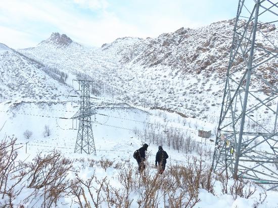 2月17日,國(guó)網(wǎng)烏魯木齊供電公司輸電運(yùn)檢人員巡視監(jiān)測(cè)線路覆冰情況。狄開(kāi)麗 攝