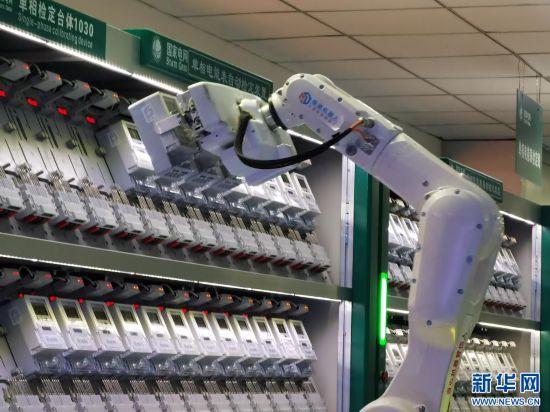 自動(dòng)化檢定機(jī)器人抓取電能表。新華網(wǎng) 發(fā)(任偉寧 攝)