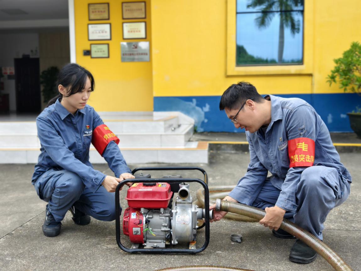 臺(tái)風(fēng)來(lái)臨前,南網(wǎng)超高壓公司南寧變電站值守人員開展應(yīng)急裝備檢查試驗(yàn)。宋名曄 攝