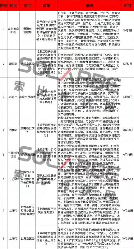 那么,10月份的光伏行業(yè)又有哪些政策值得關(guān)注呢?下面來看索比光伏網(wǎng)的梳理。