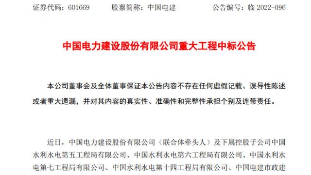上述聯(lián)合體成員包括中國水利水電第五、第六、第七、第十四工程局,以及中國電建市政建設(shè)集團(tuán)有限公司與上海電力建設(shè)有限責(zé)任公司、四川公路橋梁建設(shè)集團(tuán)有限公司。